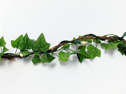 9 foot Natural Twig & Flocked Silk English Ivy Garland with attached clear mini lights. Decorative silk ivy garland will light up your wedding tables, arches or doorways. Makes an elegant setting.