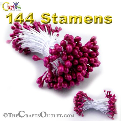 This Bundle contains the following 144 Stamen 3mm head 2in long These are ideal for Scrapbooking and could be used for a variety of project such as Perfect for flower making Small craft projects (i.e. butterfly, bees, lady bug antenna) Gift and party favor wrapping and decorations Cake decoration Wedding Scrapbook Safekeeping wedding items and more These are available in many colors, please check our store for more color options